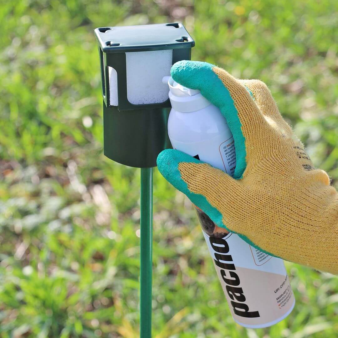 - koncentrát pachového ohradníku proti vysoké zvěři aplikujte do nosičů ve 3 místech po dobu přibližně 1 sekundy