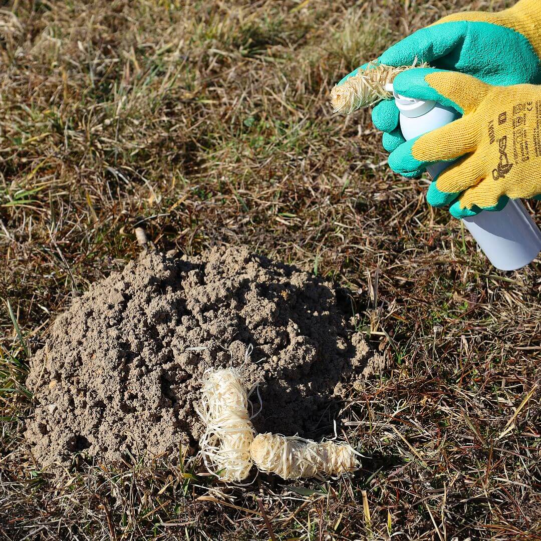 - cover the injected roll with soil from the molehill, being careful to cover only lightly so as not to block the air supply