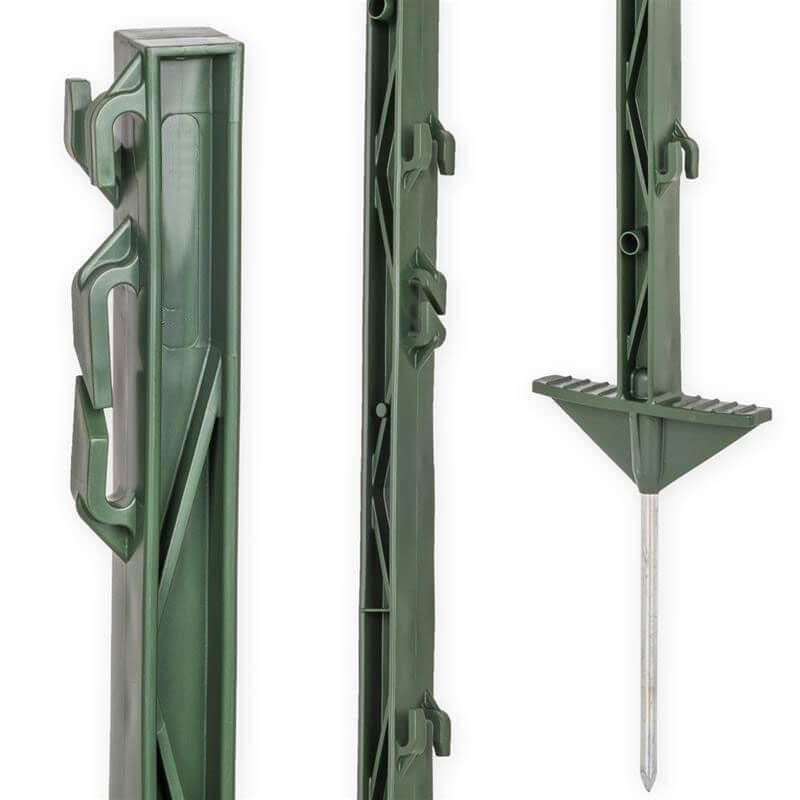 High-quality discreet green wire 100 metres with a diameter of 2.5 mm. You can create a fence height of up to 56 cm above the ground using the fixed plastic posts with 7 eyelets for individual wire pulling. The mobile plastic posts can be easily moved. There is also a grounding rod for earthing the fence .
