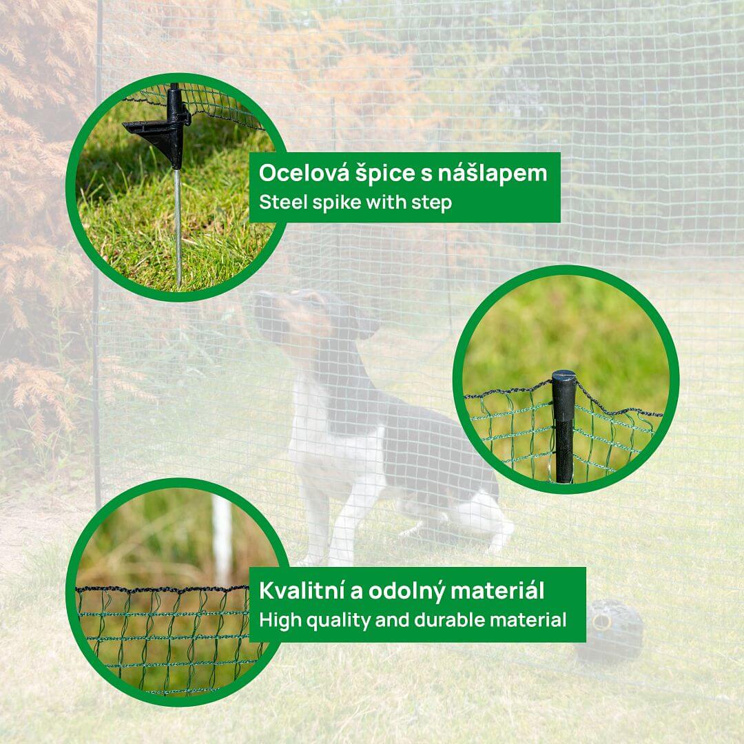 A complete set of non-conductive netting fencing with individual adaptation in uneven terrain. A versatile flexible non-conductive netting suitable for use around the house or cottage. A portable mobile fence that quickly provides privacy and creates space not only for the dog during races, but also for camping or in the garden.