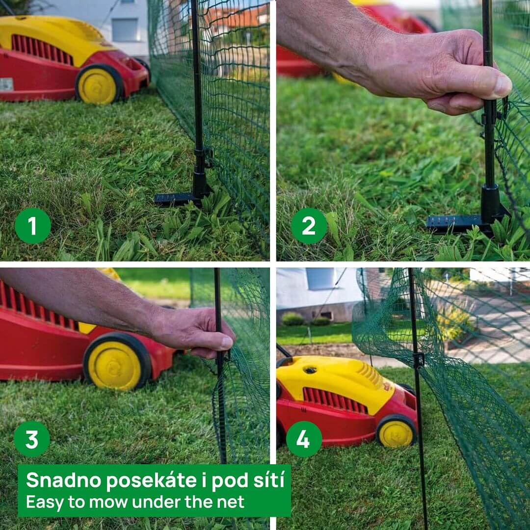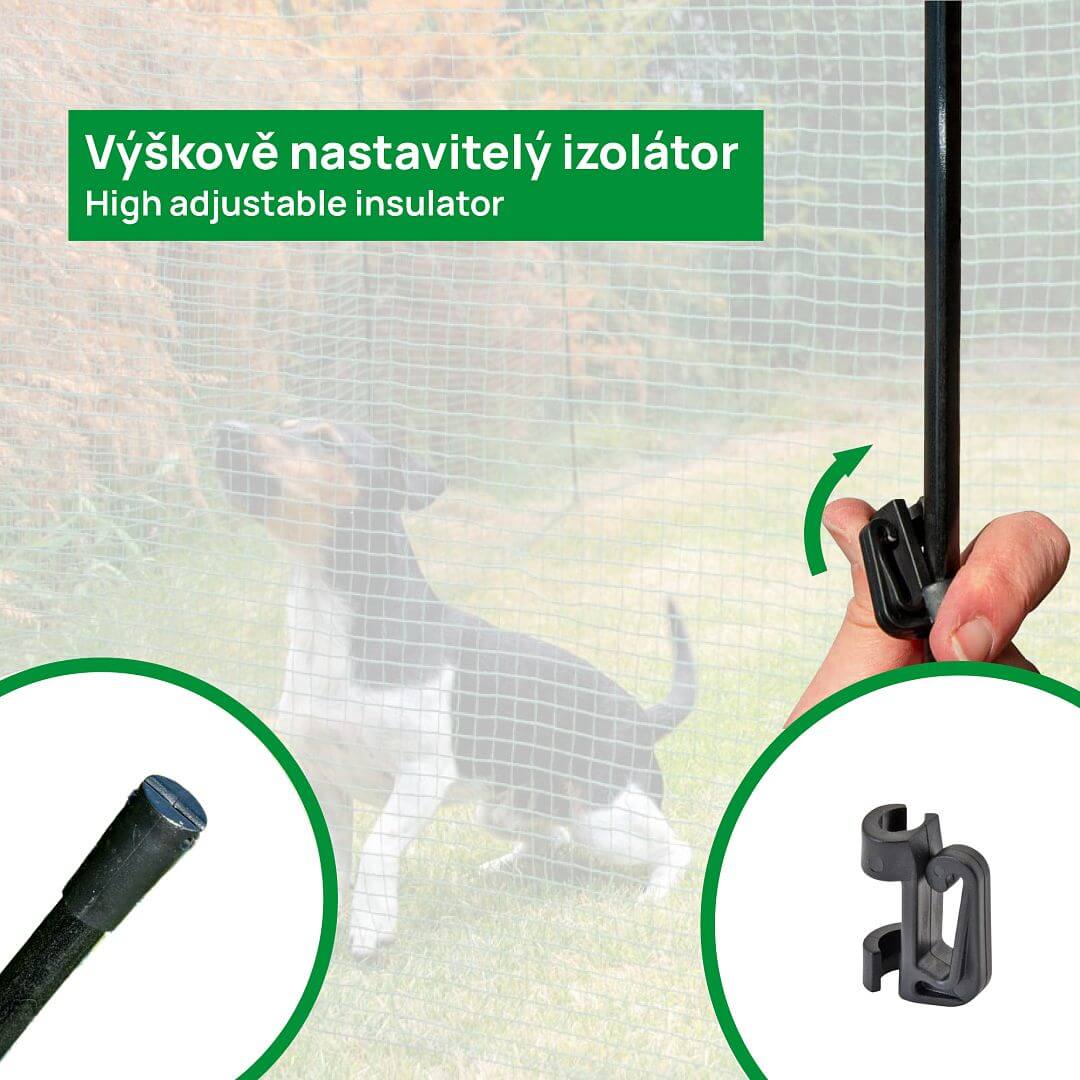 The great advantage of flexible netting is the arbitrary spacing of the posts and the ability to move the net upwards during grass cutting. Flexible non-conductive netting can be moved upwards without moving the posts. Height adjustable clip insulators can be moved along the entire length of the post.