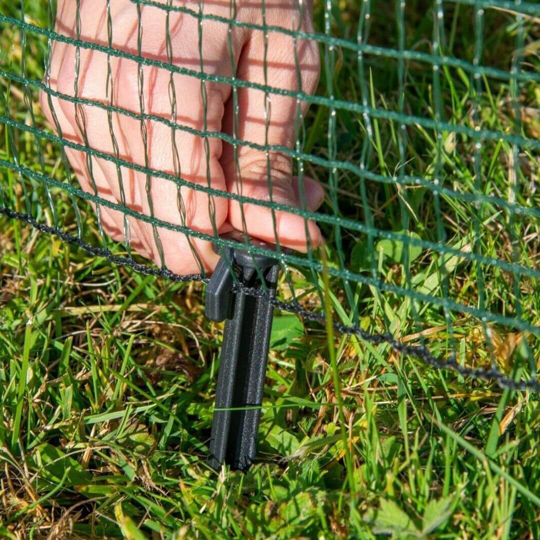 A fencing net that can act as a low fence against dogs or a dog barrier for the garden.